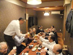 オリエンテーションを終えて、「歓迎会」会場である[花いちもんめ]へと向かった。「歓迎会」には古参会員にも呼びかけたので多数の会員が新入会員を歓迎しようと御馳走を目の前に楽しい雰囲気に包まれている。
