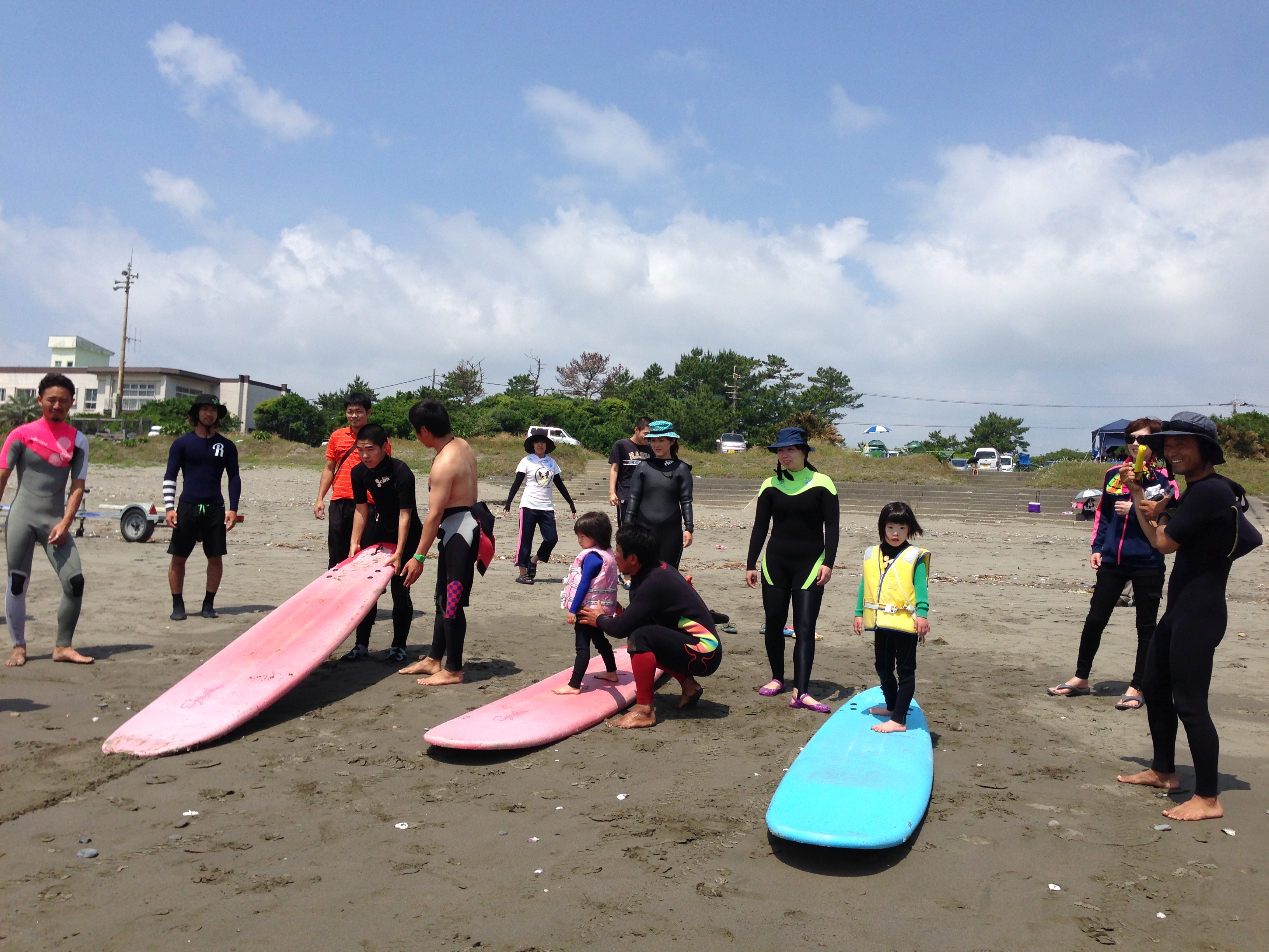 今回は、タグラグビーとサーフィン、水上ボートの体験同乗の三つ。サーフィンは、体験者1名にライフセーバー3~4名。水上ボートは、体験者1名にライフセーバー2名が挟んで同乗。タグラグビーは、住吉南小のデモンストレーションから、ルール指導、交流試合、鬼ごっこ等で、遊びを入れたレクレーション型。