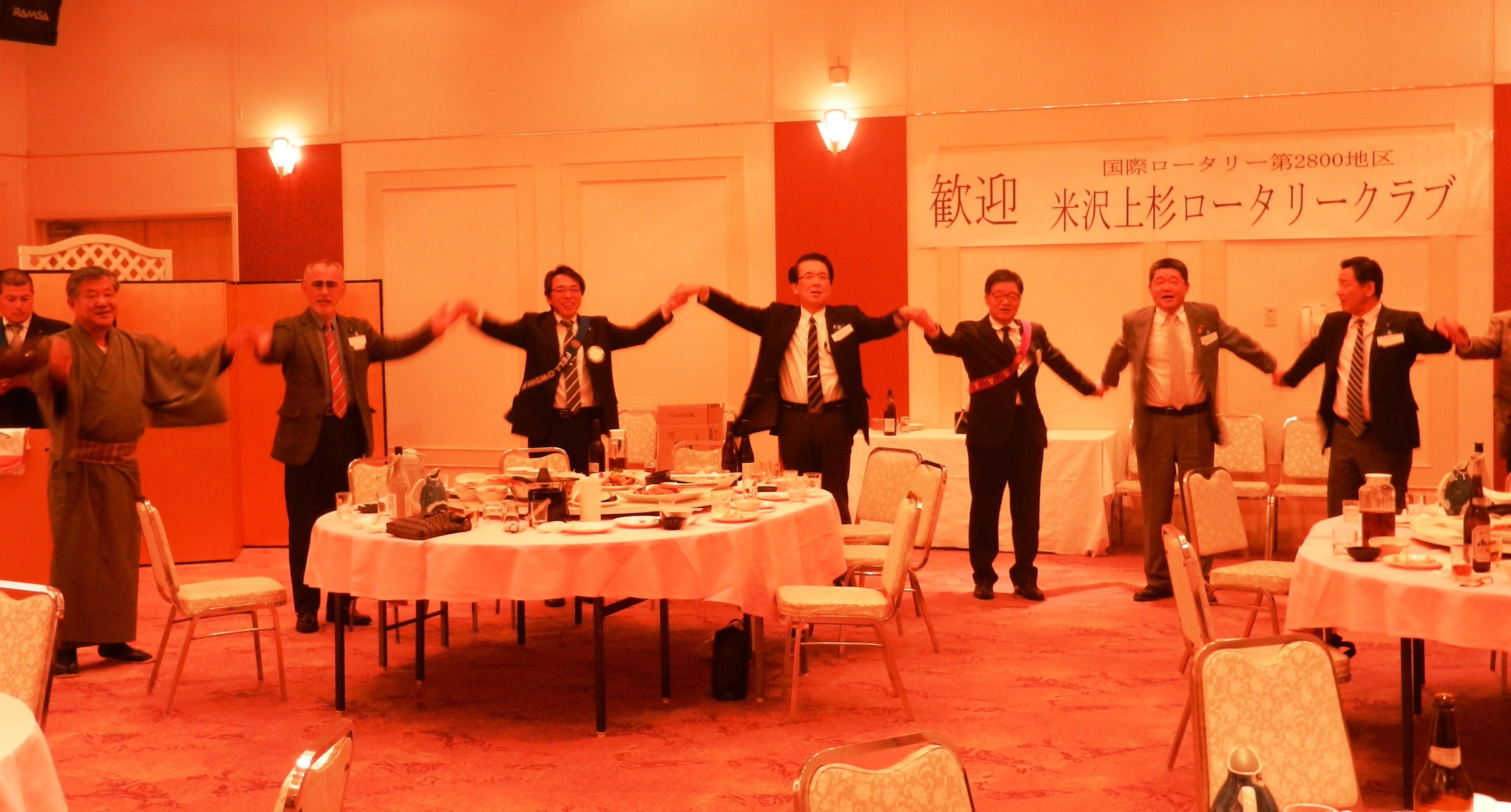 メンバーの大半は、複数回来町されておられるので、当クラブメンバーとの『深い友情』と『絆』で結ばれている姿が随所に見られました。懇親会のラストは、全員で友情の輪をつくり、「手に手つないで」を大合唱しました。