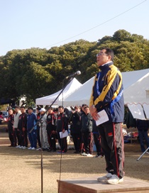 開会式は、主催者の高鍋ロータリークラブ会長の私、石田喜克、出張中の小澤高鍋町長に代わり萱嶋 稔教育長、児湯ラグビーフットボール協会黒岩正春会長のご挨拶をいただき、前回優勝カップの返還の後、 高鍋RS主将の細元 亮君の選手宣誓があり、10時10分にキックオフのホイッスルで開始されました。