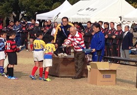 最後に児湯ラグビーフットボール協会理事長の鎌田賢治氏より総評があり楽しく充実した、第7回高鍋ロータリーカップミニラグビー大会は熱気を残しつつ閉会となりました。