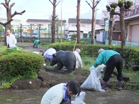 済ませ、7時にはロータリー公園での早例会に引き続き雑草除去とゴミ集めの清掃活動に取り掛かりました。