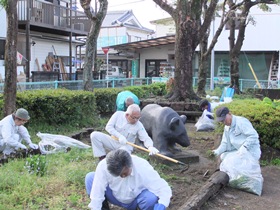 公園清掃の早朝作業はプログラムに組み込まれていることも有り、会員には周知が徹底していること、前日には中武泰一郎会長名で全員にFAXで周知されたことで多くの参加者があり、瞬く間にきれいな公園へと変身したのを見て作業した全員の心が和んだことと思います。これも社会奉仕委員会リーダー福岡直樹君による事前準備と当日の段取りによるものでありましょう。