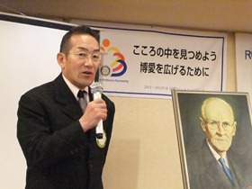 特に、ロータリーは親睦に始まり親睦で終わるものの、その中には職業奉仕や社会奉仕が当然として含まれるもので有ること、ロータリー活動の原点はクラブであることからその活性化を図ること、そのためのクラブ運営は如何にあるべきか等の話は、ややもすれば例会に出席して食事を摂って終わりと、安易になり易い心の弱さを突かれた感じがしたものでした。