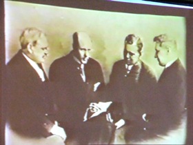 次に田中君からDVDとプロジェクターを使用して、青年弁護士ポール・ハリスが当時のシカゴの商取引に耐えかねて、友人と公正な取引等について相談しロータリーと言う会合を考えたこと。次々と心を同じくする仲間を増やしながらお互いの事務所を持ち回りにしたロータリーの創成期などについて分かりやすい説明であった。