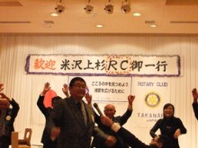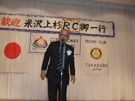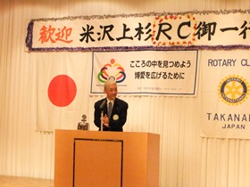 例会では中武泰一朗高鍋ロータリー会長の挨拶に引き続き、中村隆志米沢上杉ロータリー会長挨拶を頂きました、その中に来年は米沢上杉ロータリークラブの創立50周年で5月15日には記念式を執り行うので高鍋ロータリークラブからも参加をとのお誘いを頂きました、まだ1年以上先の事ではありますが本当に楽しみであります。